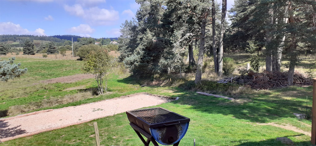A l'extérieur, un grand espace vert de 2 ha environ avec terrain de pétanque au pied du gite.