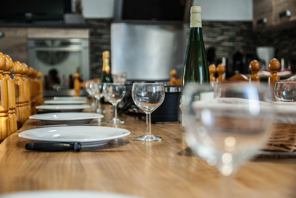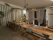 Dans le bâtiment principal une cuisine de pro avec réserve - Salle à manger éclairée par une verrière plein sud - Au 1er étage salon bar