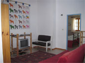 A l'étage: 1 salon central avec TV et jeux, donne accès aux 4 chambres : ch.1 avec 2 lits en 90cm, ch.2 avec 1 lit en 140cm, ch.3 avec 3 lits superposés en 90, ch.4 avec 1 lit superposé en 90 et 1 lit en 140.
