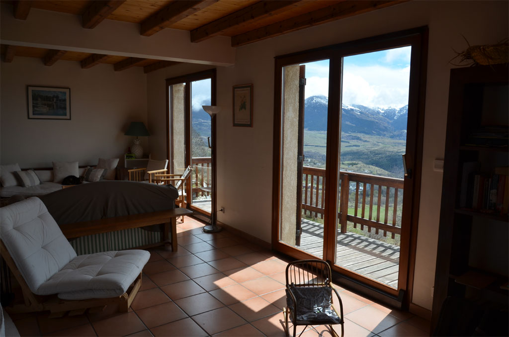 À l'extérieur, un jardin non clôturé avec vue imprenable, espace repas équipé et jeux enfants (voir équipements)