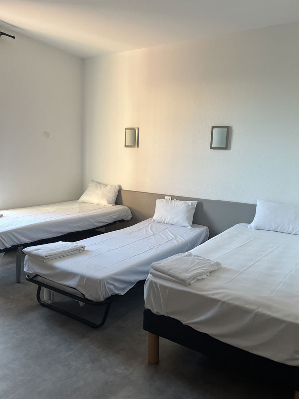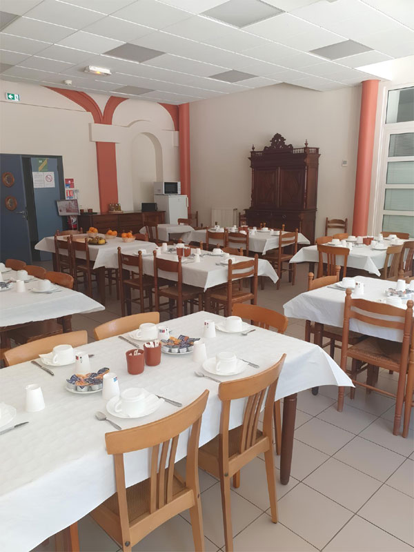 Sur 400 m² de superficie, le centre d'hébergement met à disposition 24 chambres toutes dotées d'une salle d'eau privative (lavabo, douche) avec WC :