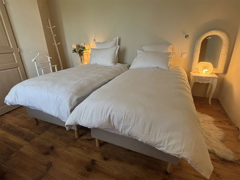 La grange : 3 chambres dont 2 chambres de 2 personnes et 1 suite familiale de 4 personnes, soit 8 personnes maximum