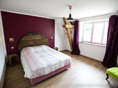 . A l'étage : 5 chambres "déco", 4 ch. avec lit queen size (160x200) et 1 ch. avec 4 lits de 90x200 (pouvant être collés 2 à 2), 1 salle de douche , 1 salle de bain, 2 wc séparés et un salon d'appoint avec banquette-lit (couchage 160x200), écran plat et baby foot.