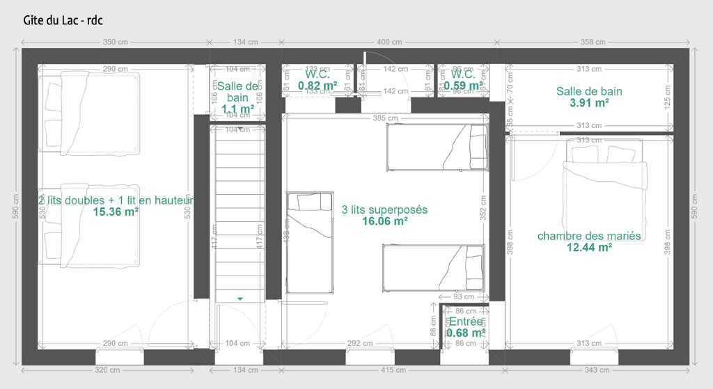 Gîte du Lac : 7 lits doubles - 1 lit simple en hauteur - 5 lits superposés