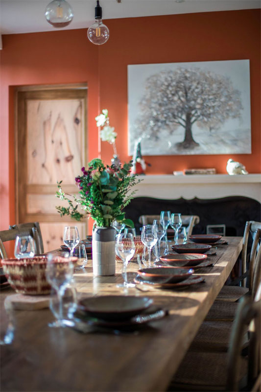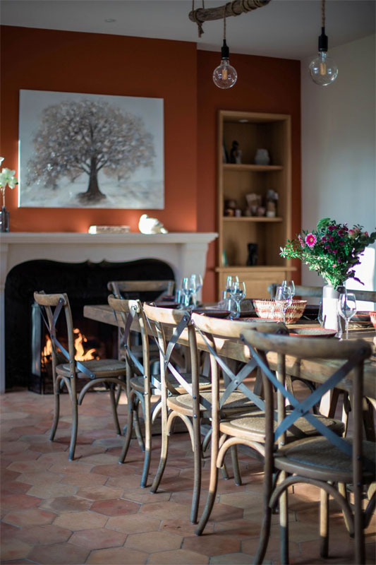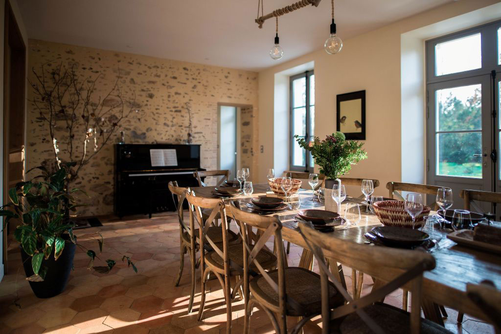 - Une salle à manger avec cheminée, piano et grande table pour 15 personnes