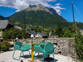 Des terrasses privatives viennent agrémenter le confort pour permettre de profiter également des extérieurs : forêt de 7 000 m², potager bio, avec vue sur les Bauges, la dent de l'Arclusaz notamment et le massif de Belledonne. Plusieurs zones sont réparties sur le terrain pour permettre à tout à chacun de profiter de l'harmonie des lieux : certains communieront avec la nature en pleine méditation, d'autres profiteront du paysage en apportant avec eux un panier spécial apéro, avec quelques vins bios issus de la cave du Gîte et enfin les plus combattants useront leur cochonnet et leur talent sur le jeu de boules tout à côté des gîtes.