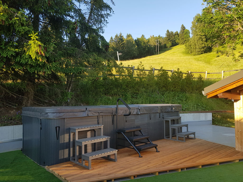 Pour les plus téméraires, un bain à remous sur le solarium vous invite pour un moment détente au milieu de la nature.