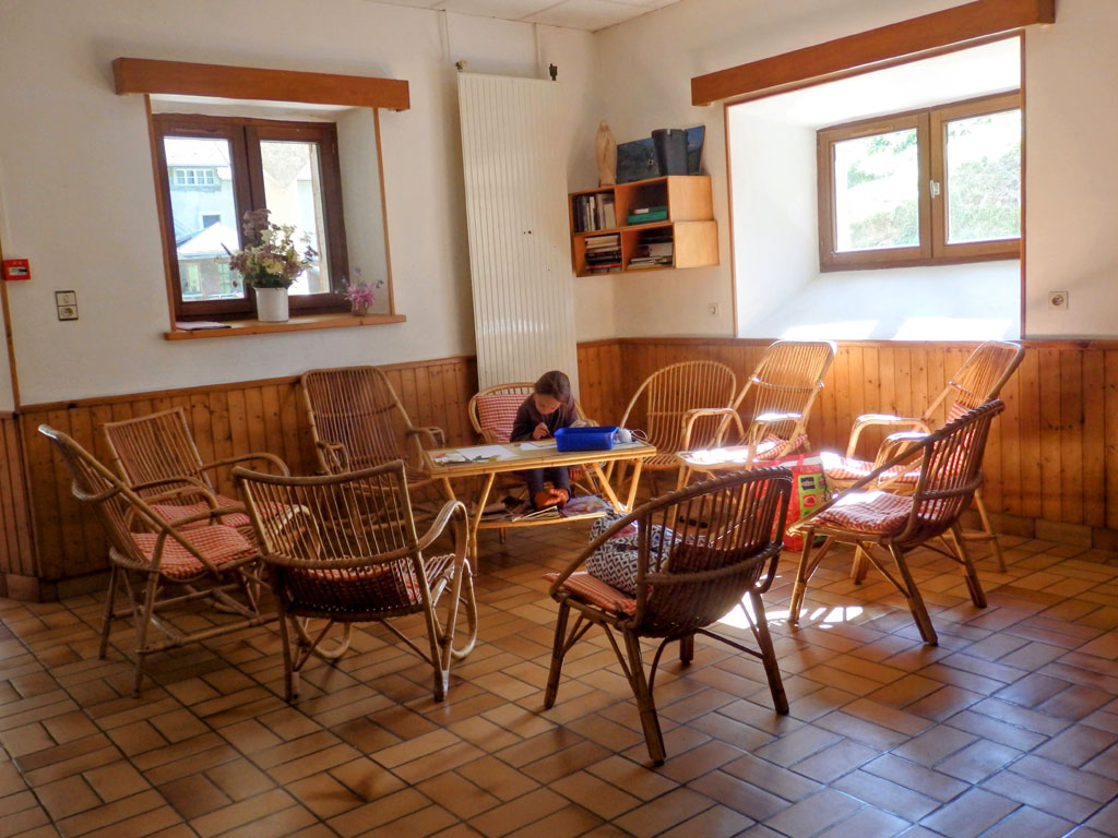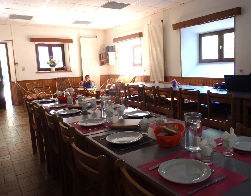 La grande salle de 50 m² dispose d'un grand espace repas et d'un espace salon avec fauteuils pour l'apéritif et la soirée. Les 9 chambres situées au 2ème et 3ème étage permettent l'accueil de 36 personnes. Chaque étage dispose de douches, lavabos et toilettes.