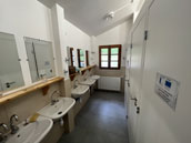 Réfectoire, grand salon, petit salon, cuisine de collectivité, 1 chambre de 3 lits simples, 1 chambre de 2 lits simples, 1 chambre 1 lit, 2 WC, 2 douches, lavabos.