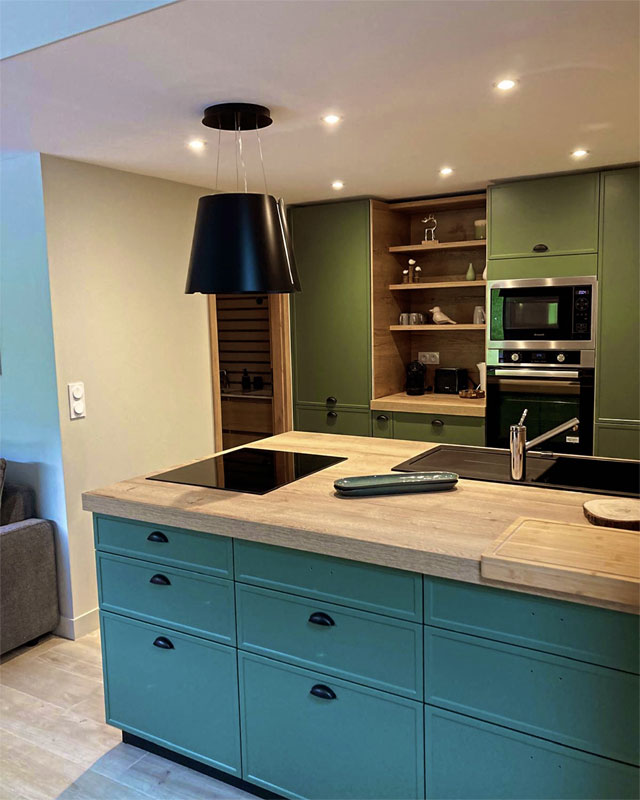 Dans chaque cuisine : Réfrigérateur-congélateur - Plaques induction - Four électrique - Micro-ondes - Vaisselle - Lave-vaisselle