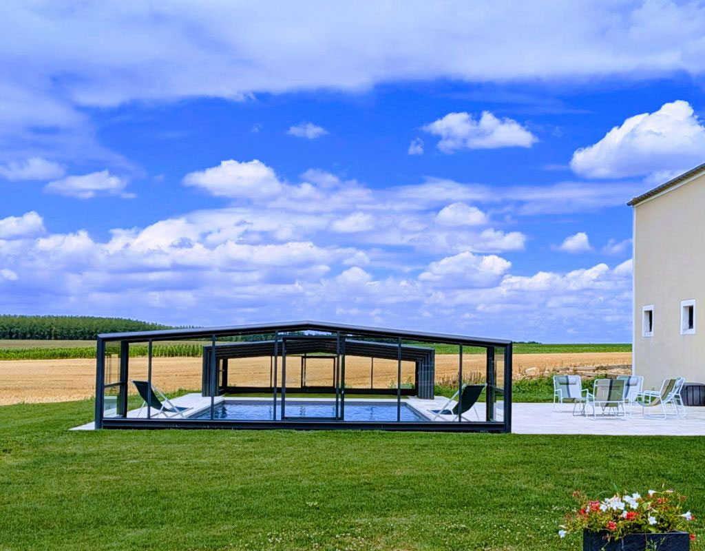 À l’extérieur, le jardin et la terrasse s’étendent sur la plaine, tandis qu’une piscine chauffée et sécurisée promet détente et convivialité aux beaux jours.