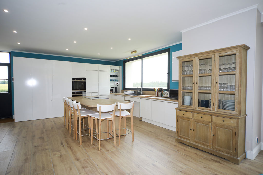 - 1 grande pièce à vivre de 100m² avec cuisine, coin repas et salon