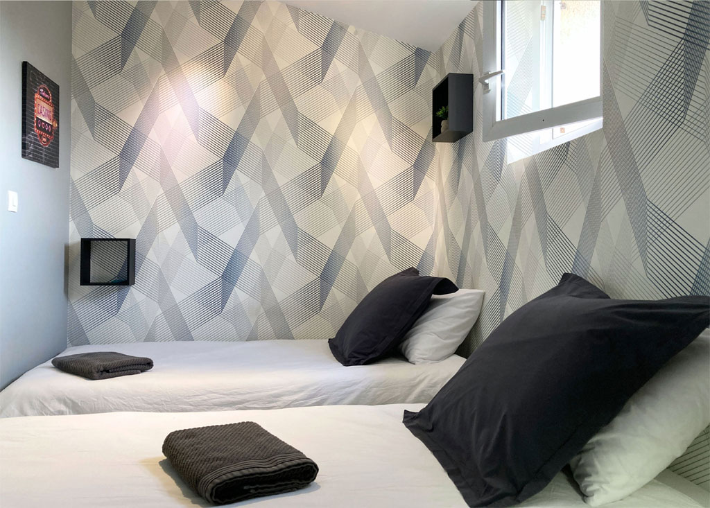 - Chambre 1 : 2 lits simples en 90 jumelables + 1 lit bébé possible