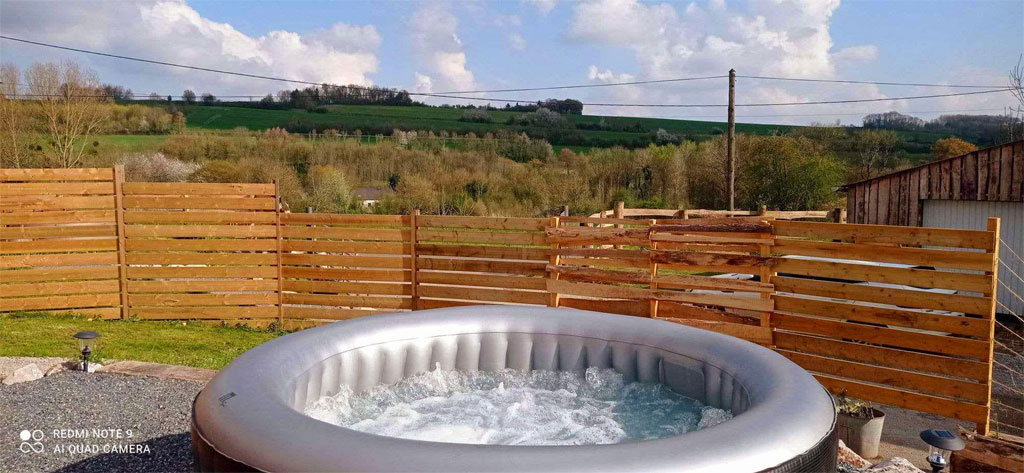 Une terrasse avec barbecue et spa