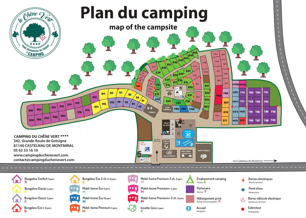 Profitez aussi d’un large choix d’activités sur place : piscine chauffée (selon la saison), toboggans aquatiques, aires de jeux, boulodrome, terrain multisports et espace fitness.