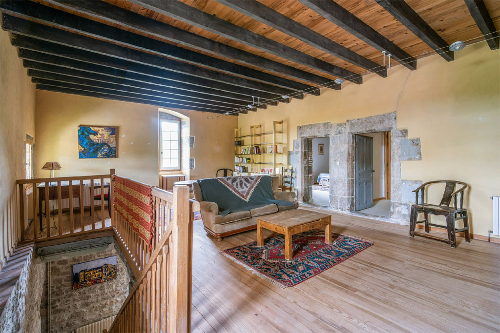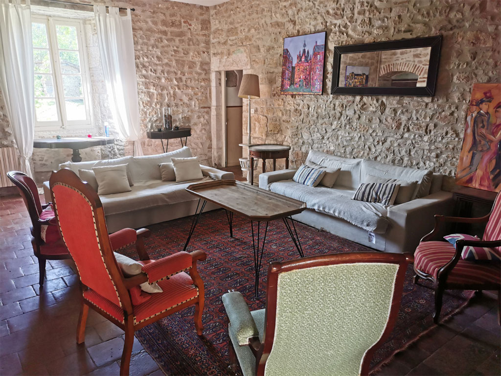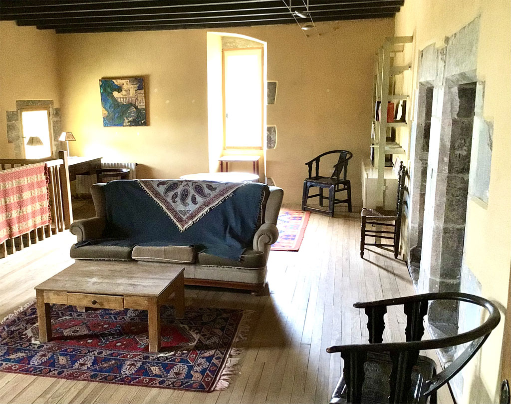 Le salon principal est équipée d’une cheminée fort agréable en hiver et de murs épais qui maintiennent le frais l’été….