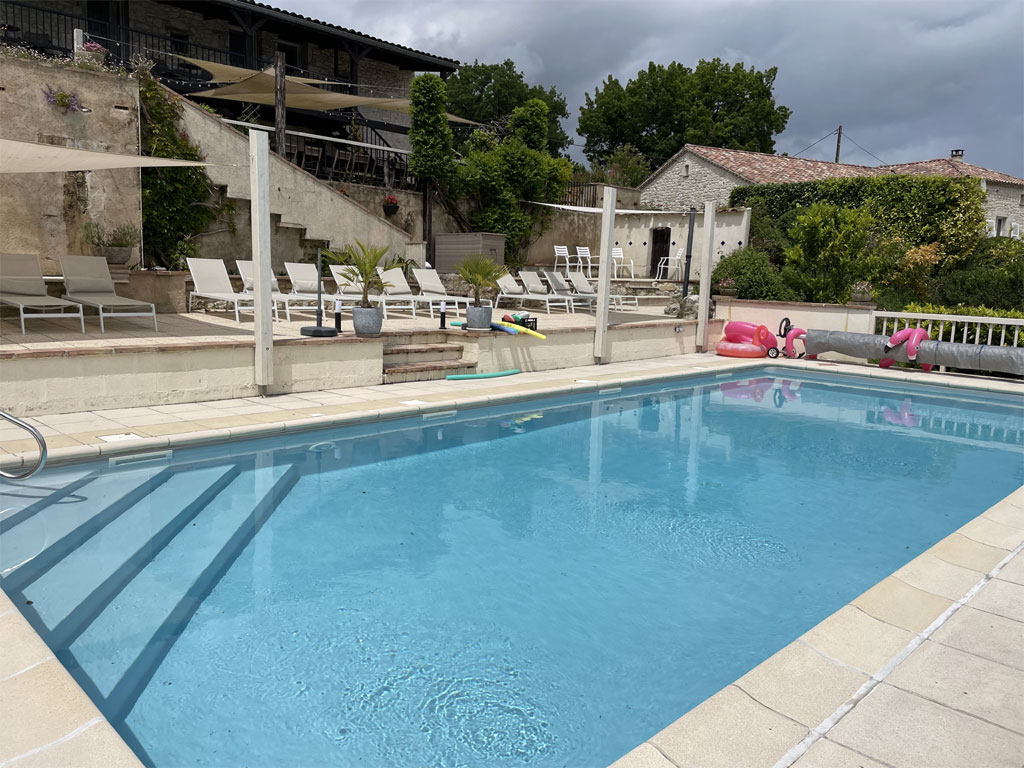 Le gîte offre des très grands espaces de vie (150m²), des extérieurs fleuris, plusieurs terrasses, une piscine, un spa et de multiples activités pour les grands et les petits.