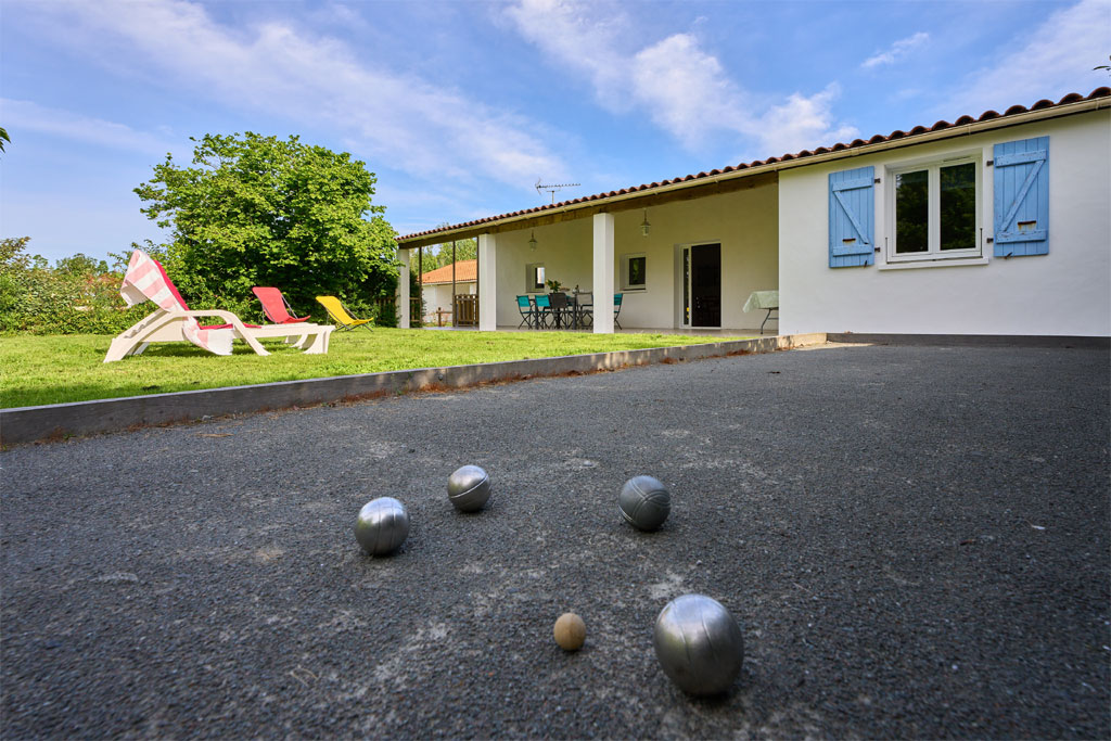 Terrasse - Barbecue - Salon de jardin - Chaises longues - Terrain de pétanque