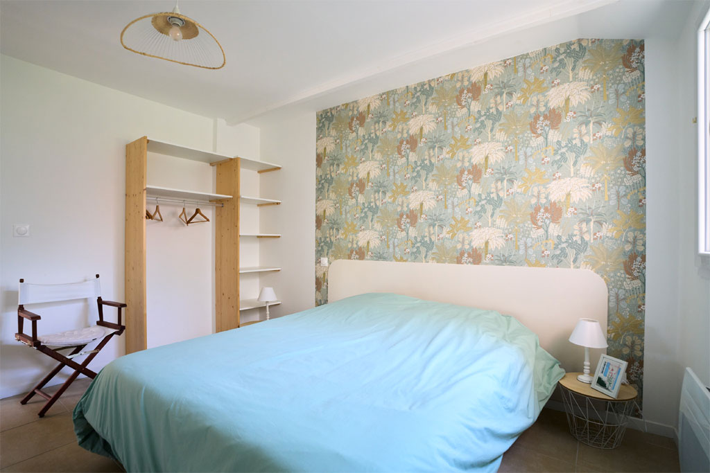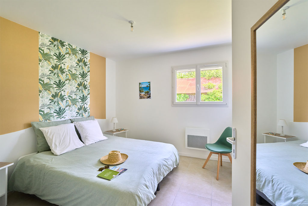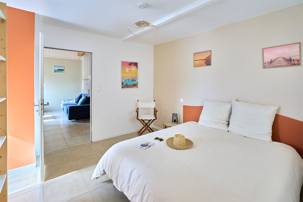 1 séjour/salon, 1 cuisine (entièrement équipée), 2 chambres, 1 salle d'eau, 1 WC, 1 petite terrasse bois et jardin clos.