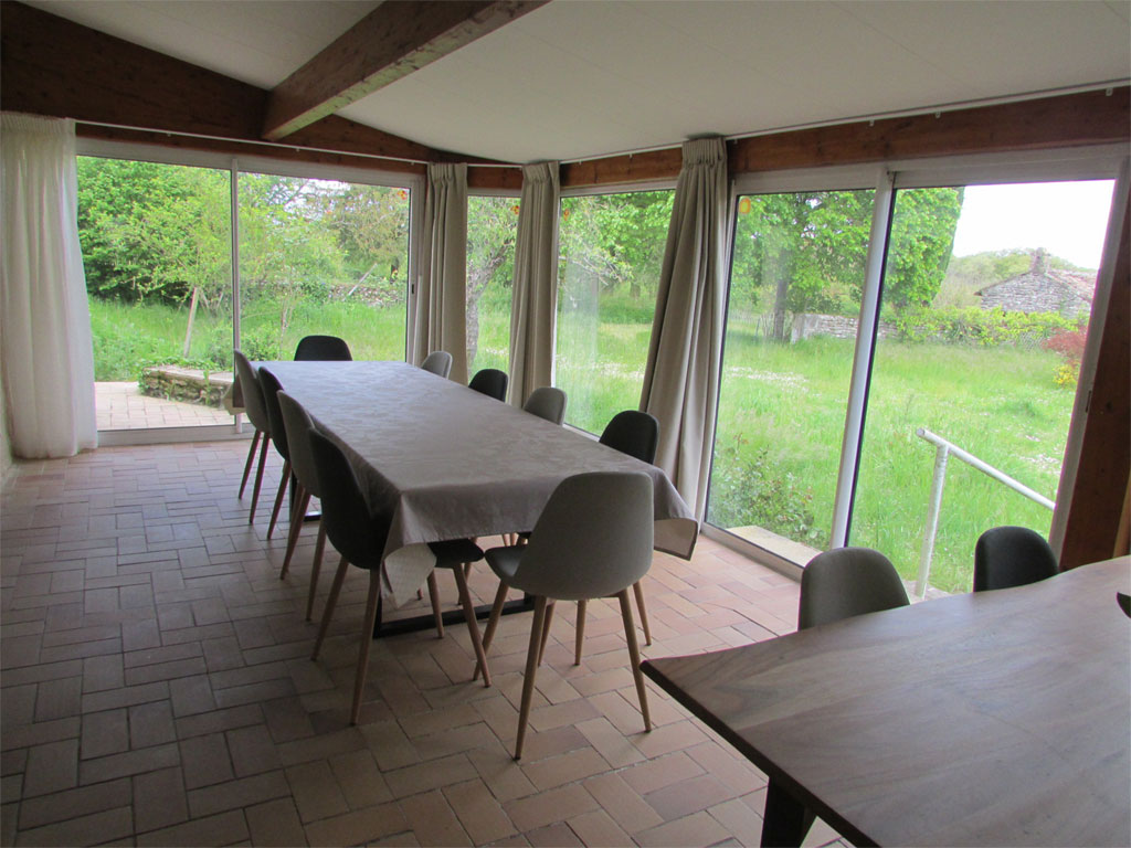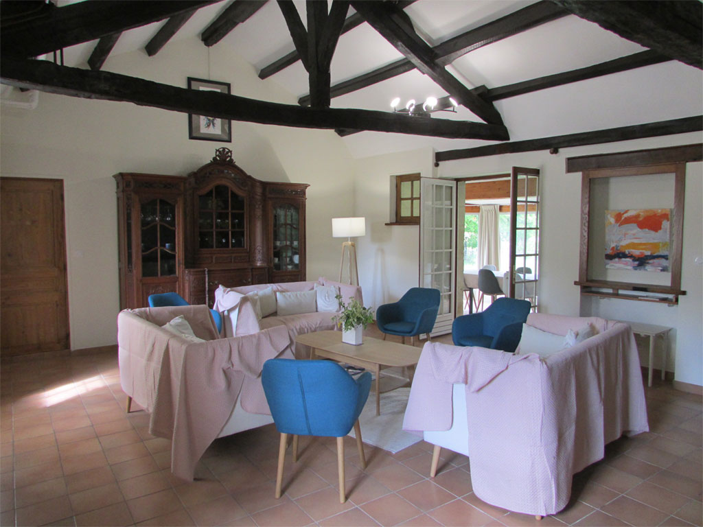 - une salle à manger de 20 m2 (véranda donnant sur le parc), accueillant 14 personnes, avec cuisine attenante de 14 m².
