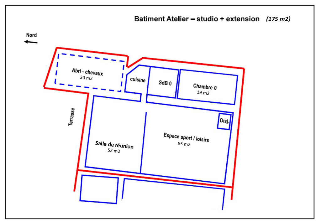 S'y trouvent également une salle de réunion / stage de 48 m² et une salle de loisirs de 85 m².