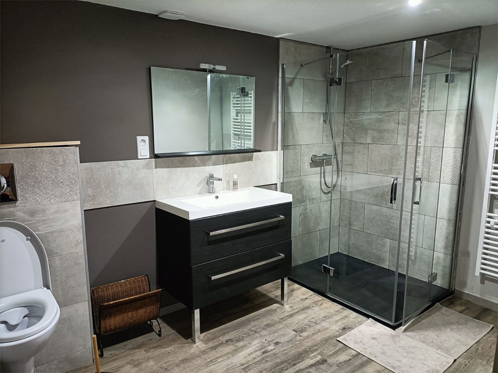 . 2 salles d'eau avec chacune 1 douche à l'italienne, meuble vasque et sèche-serviettes