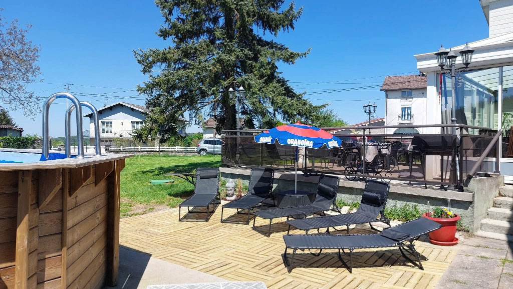 Terrasse - Barbecue - Salon de jardin - Piscine chauffée de mai à septembre (en fonction de la météo) - Terrain de pétanque - Ping-pong - Jeux pour enfants (balançoire, trampoline)