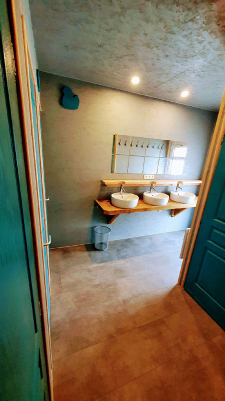 Dortoir : 80 m² avec lits superposés, grand sanitaire et vestiaire