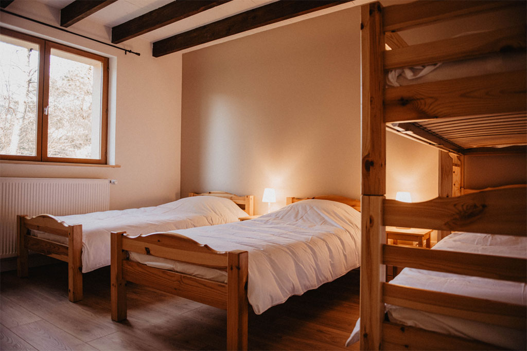 - 1 dortoir de 4 personnes (2 lits simples en 90 + 1 lit superposé 2x90)