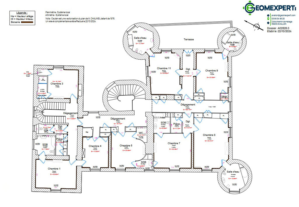 - 15 chambres, 13 salles d'eau, 19 WC
