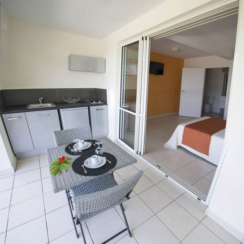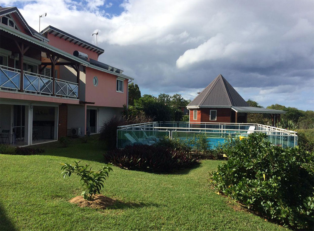 Son jardin de 3000m² équipé d'un barbecue et d'une table pour des repas à l'extérieur et des grillades en famille, offre une multiplicité d'arbres fruitiers (goyaves, caramboles, pommes cannelles, pommes lianes, fruit de la passion, coco, cerise acérola, etc.), permettant au gré des saisons leur dégustation et leur cueillette à la main. On y trouve aussi diverses plantes aromatiques ou médicinales, pour se faire des infusions locales (citronnelle, verveine blanche, gros thym, romarin …).