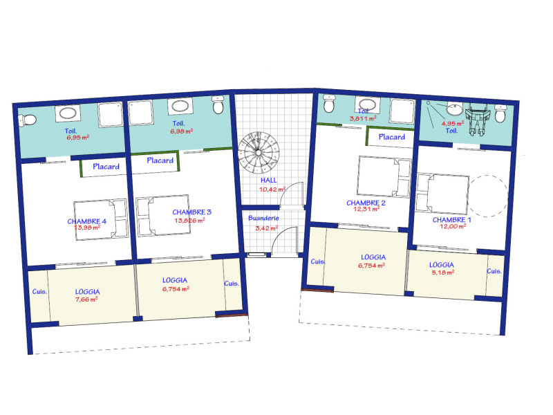 - 4 vérandas de 8m² avec vue mer + cuisines toutes équipées