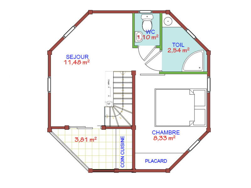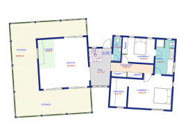Un bâtiment principal d'une capacité d'accueil de 14 places et un bungalow en bois d'une capacité de 5 places. Ils sont tous deux espacés d'une dizaine de mètres.